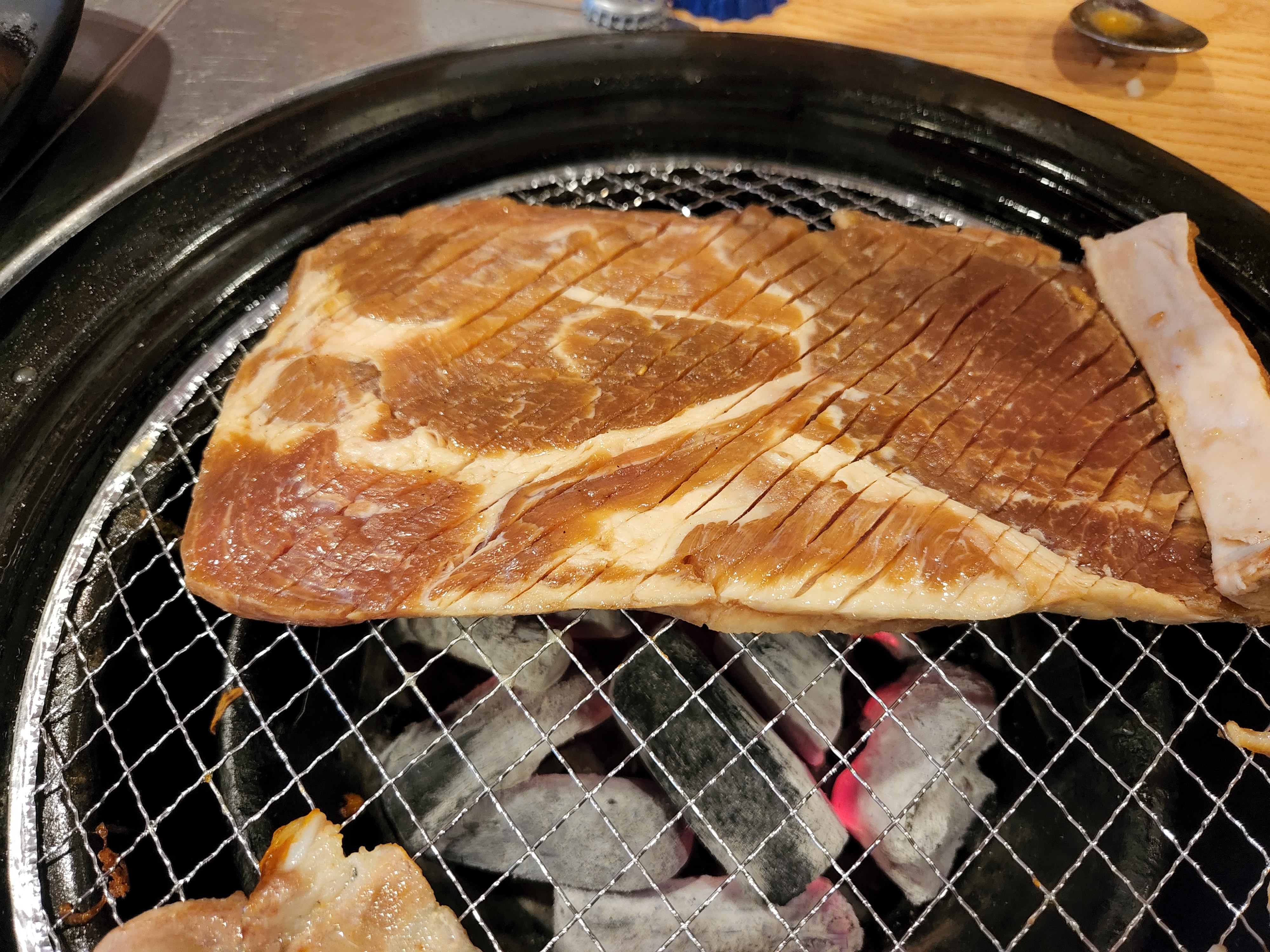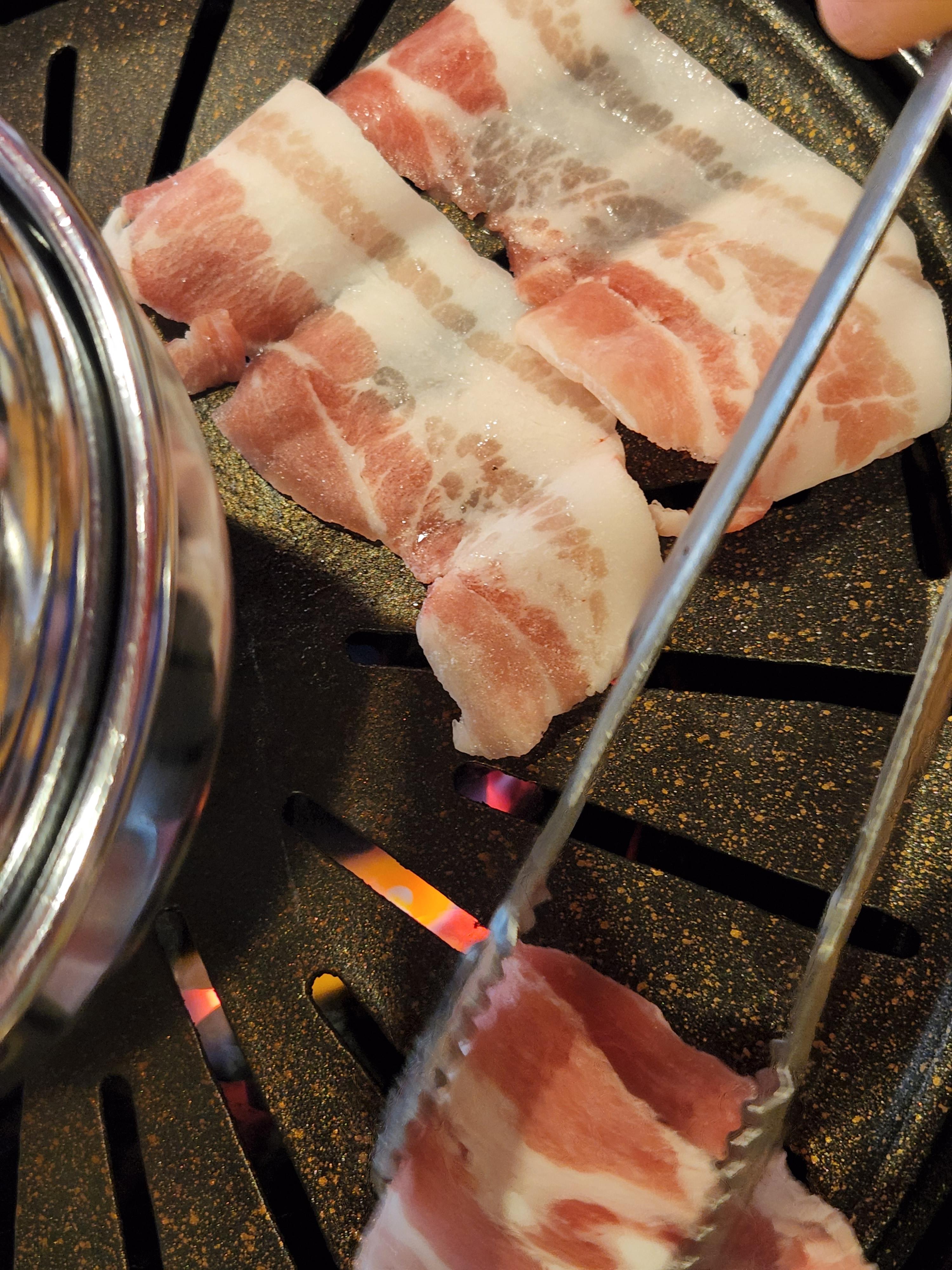 고기가 바뀌니 판도 돼지갈비용 판으로 바꿔주시네요.