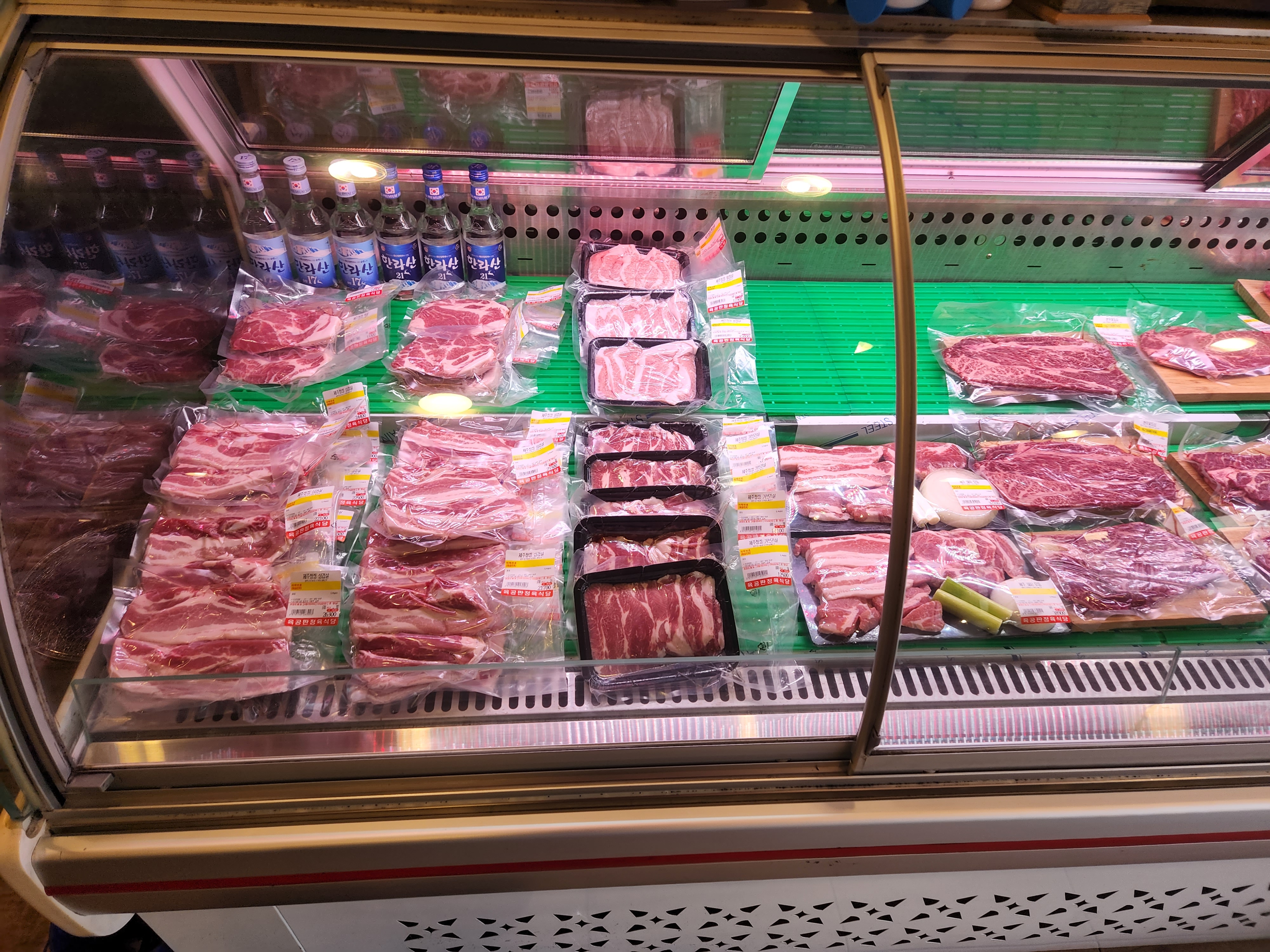 가게에 들어가면 각종 고기들이 진열되어 있습니다.