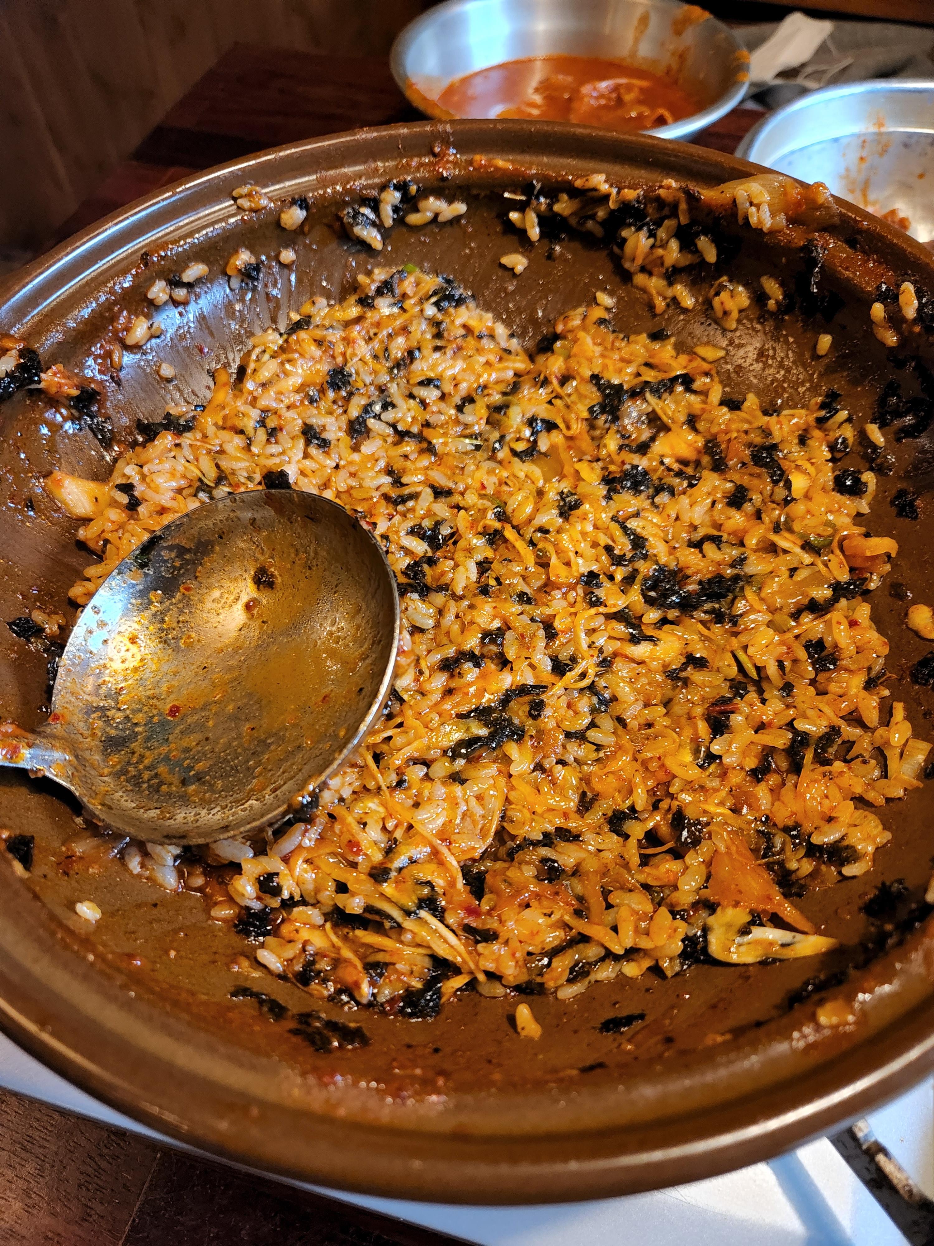 닭을 어느 정도 먹고 나서 주문한 볶음밥.