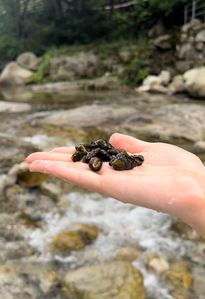 돌 밑을 찾아보니 다슬기도 있어서 몇 마리 잡았습니다.