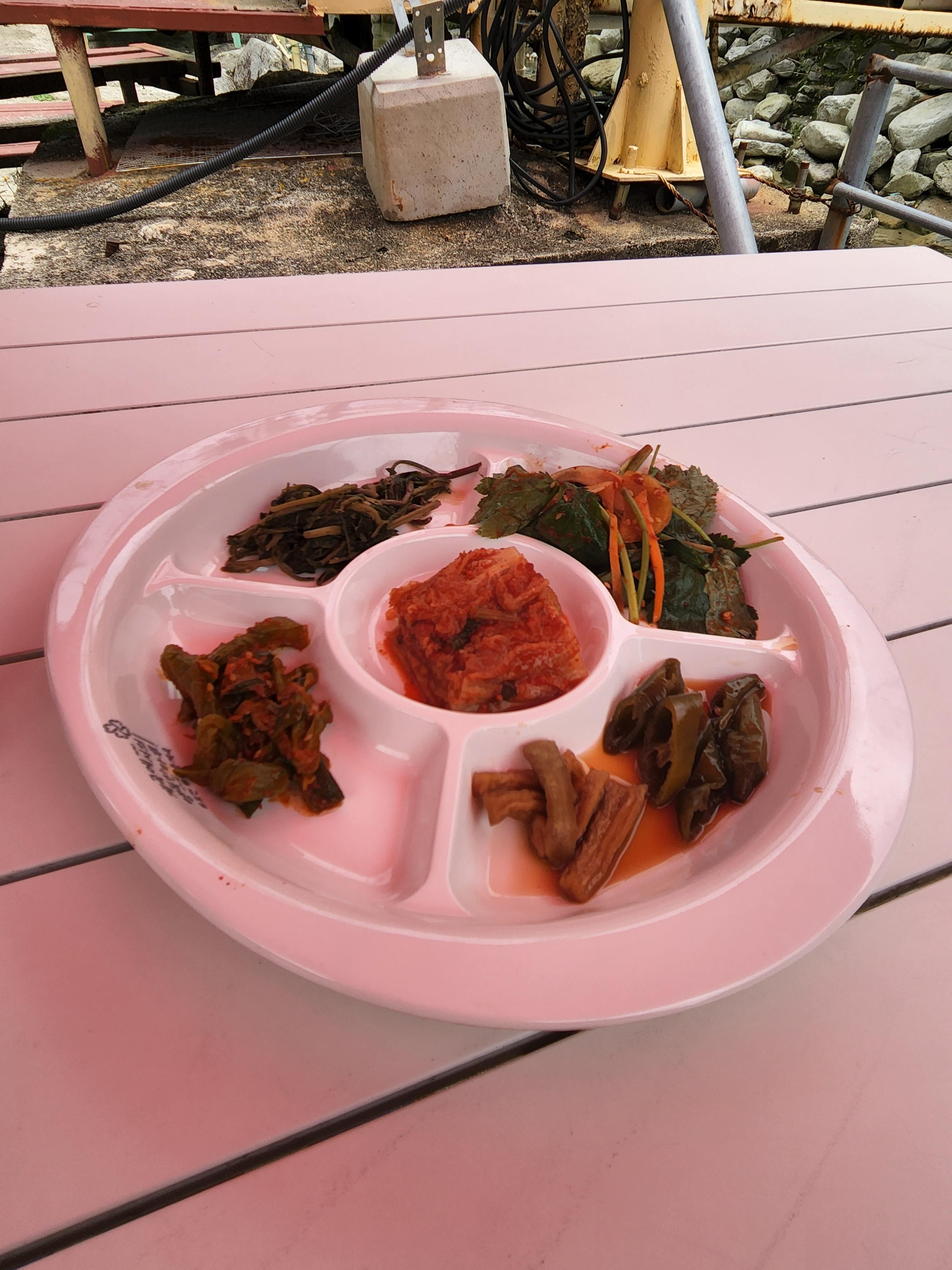 주문한 백숙과 반찬이 나옵니다!