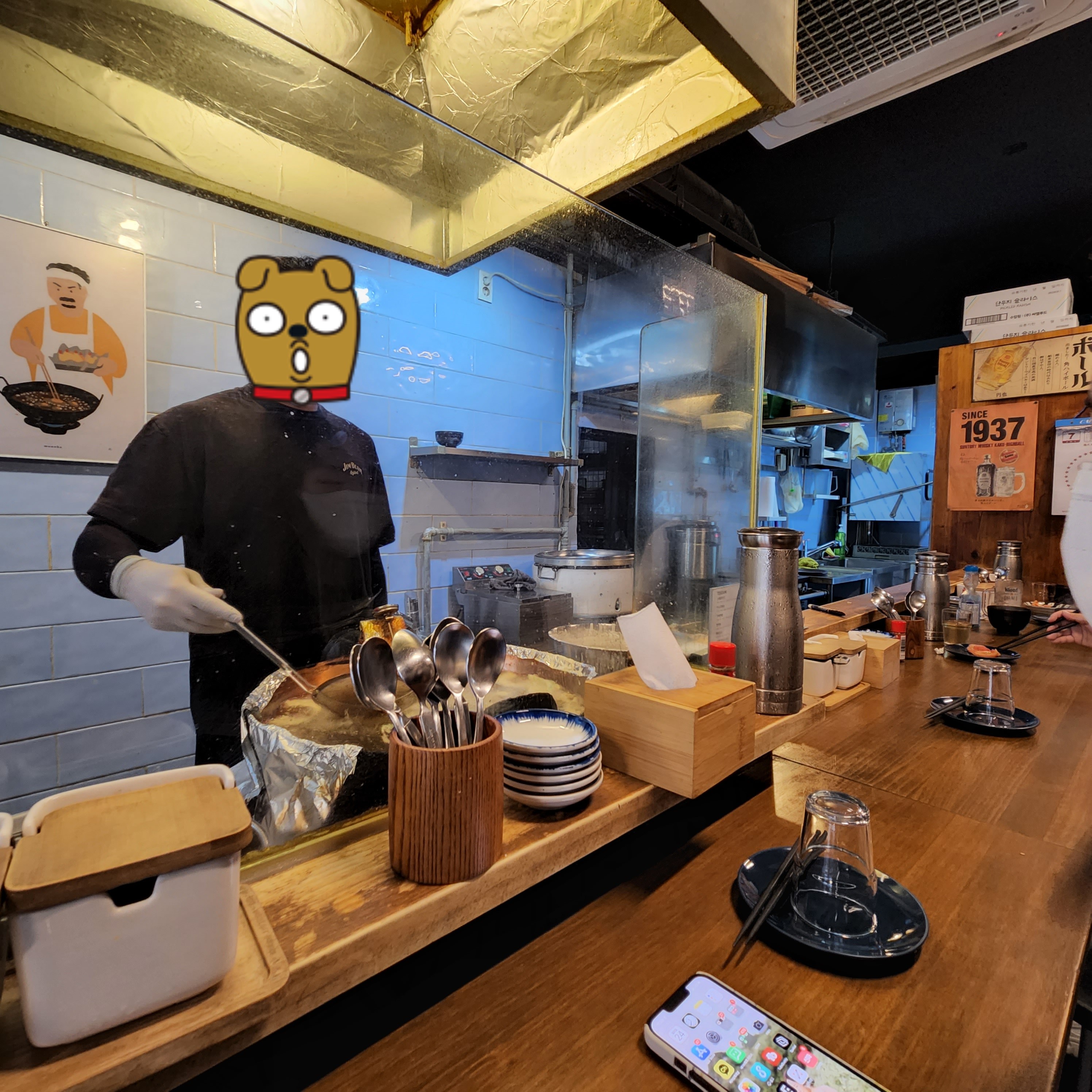 좌석은 주방을 향하는 일자형 테이블로 구성이 되어있네요!