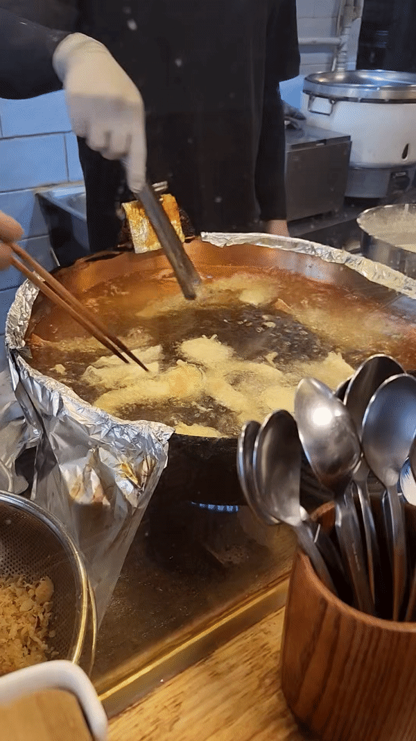 저희는 튀김기 앞에 자리를 잡았습니다.